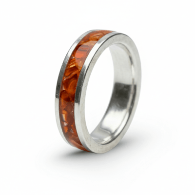 Mosaico – Par de Alianças em Prata 925 com Mosaico de Pedra Natural Ágata de Fogo