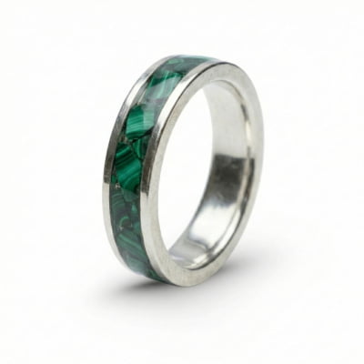 Mosaico – Par de Alianças de Prata 925 com Mosaico de Pedra Natural Malaquita