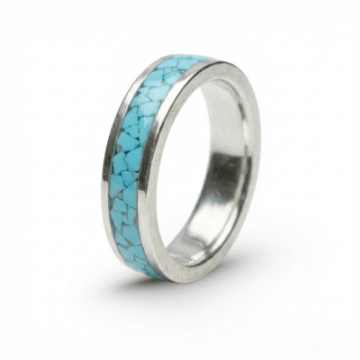 Mosaico – Par de Alianças de Prata 925 com Mosaico de Pedra Natural Turquesa