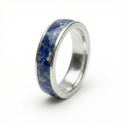 Par de Alianças em Prata 925 com Pedra Natural Sodalita – Mosaico